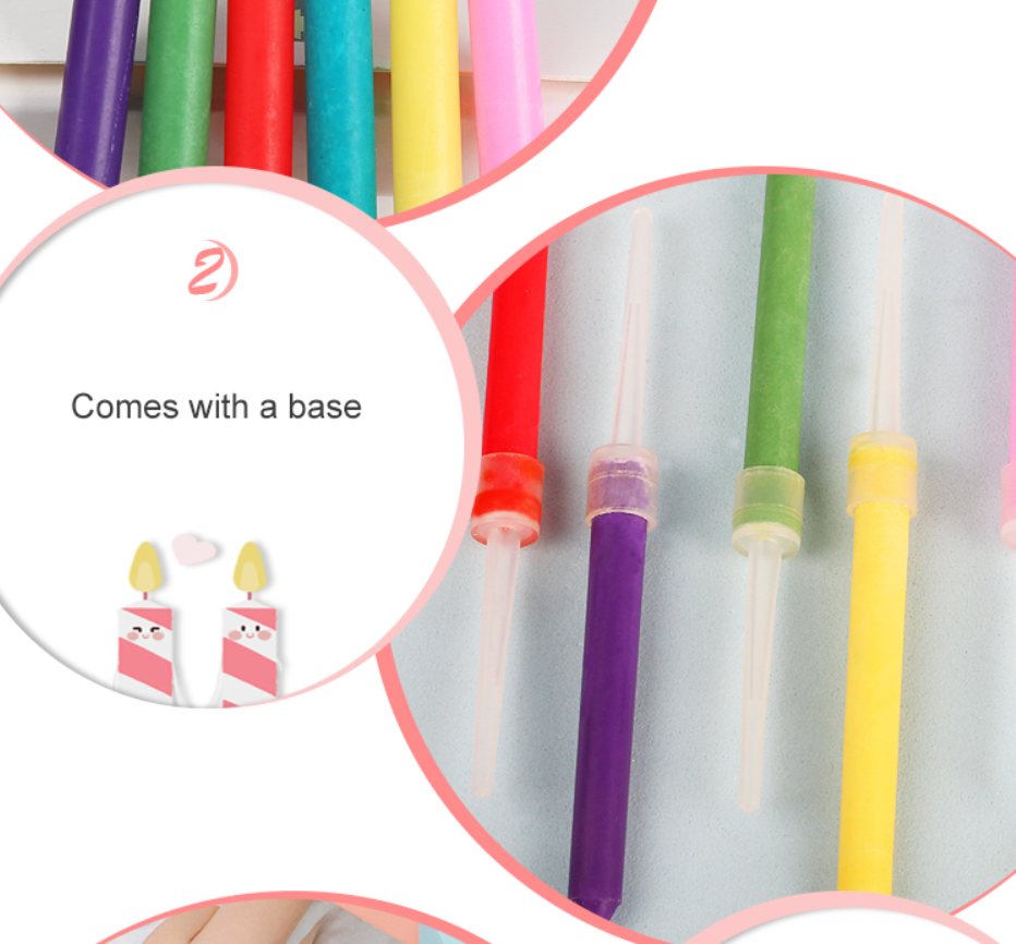 Add a touch of fun and vibrancy to your birthday celebrations with these Colorful Flame Birthday Candles. These candles are designed to bring joy and excitement to any birthday cake or dessert.