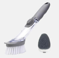 Make your kitchen chores easier, faster, and more efficient with our 2-in-1 Dish Washing Brush! This unique gadget allows you to dispense dish soap directly onto the brush from the bottle for a no-mess wash!