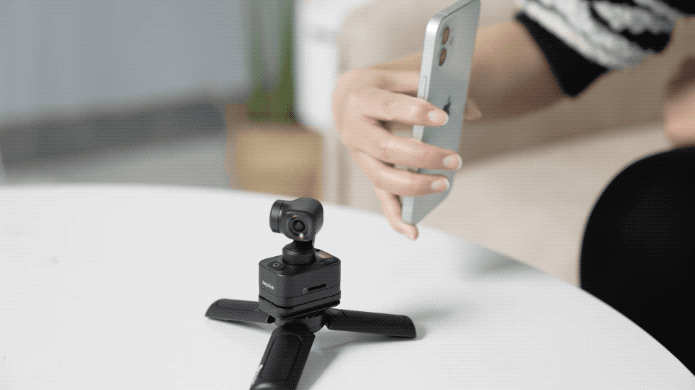 This is a cordless and wire-free gimbal camera that is pocket-sized and versatile. Its detachable handle allows it to be used as a mountable camera for various purposes.