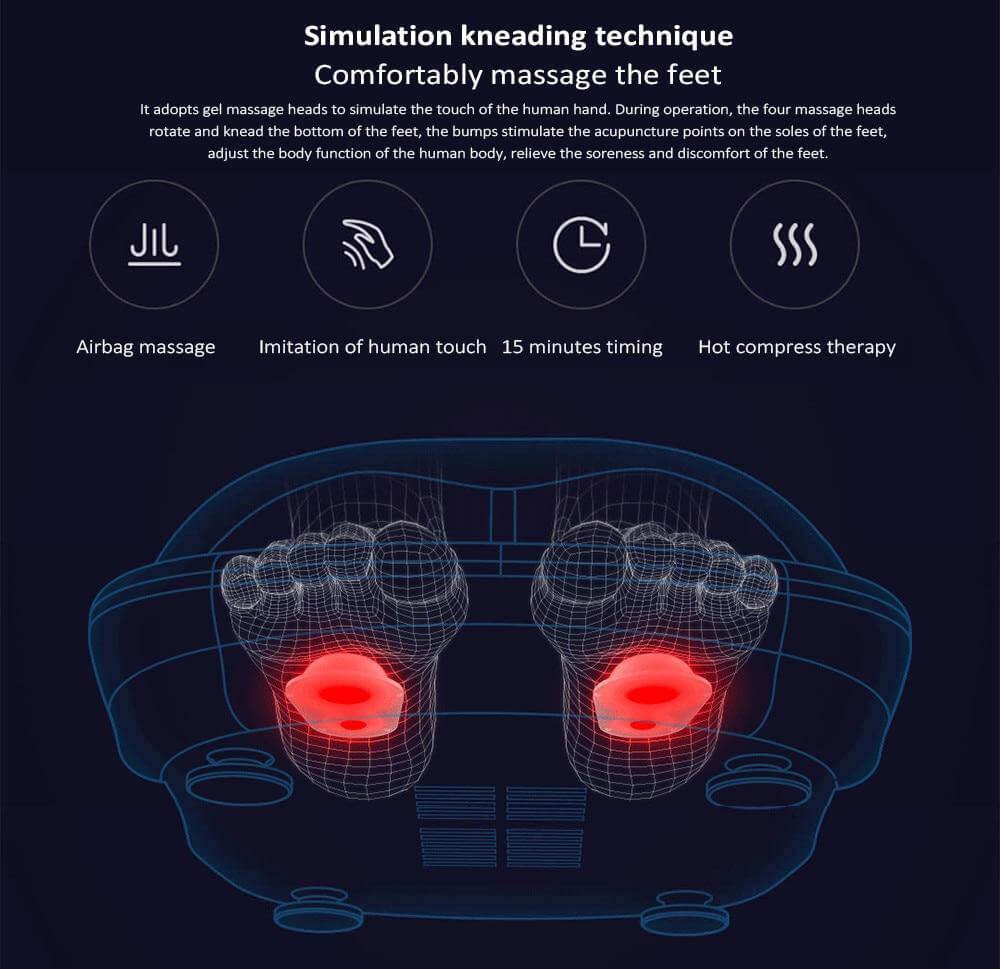 Dynamic airbag wrapping, multiple cares, massaged by rhythmic pressing to stimulate the relevant acupuncture points and adjust the body function. Simulation kneading technique, comfortably massage the feet, relieve the soreness and discomfort of the feet