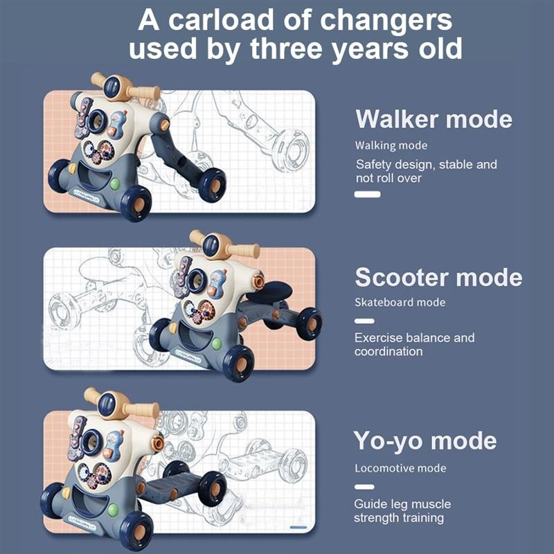 1x 3in1 Anti-Rollover Baby Learning Walker Trolley