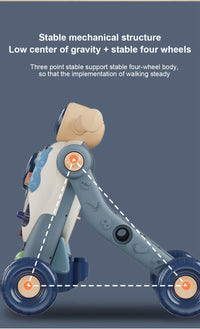 This sleek and stylish 3in1 Anti-Rollover Baby Learning Walker Trolley is perfect for keeping your little ones safe and entertained as they learn to walk. With a sturdy construction and anti-rollover design, it provides a stable base for your child to explore their surroundings. Plus, the fun lights and sound effects will keep them entertained for hours on end.