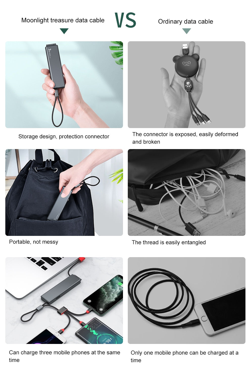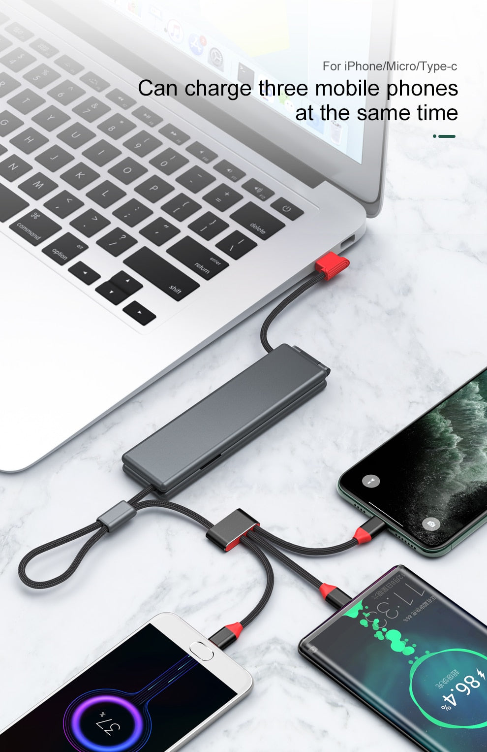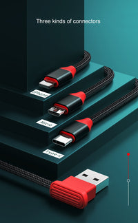 3in1 Charging Cable is ideal as a spare cable or replacement whether you are at home, in the office, in your car, or while traveling. Fast charging cable meets the needs of multi-device charging at the same time, Designed with 3 different USB ports phone/micro USB/type C, current to give your 3 devices charge at the same time. (Cable can be used for charging but does not have the connections for data transfer.)