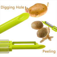 It is used for shredding and cutting onions, cutting fruits and vegetables, etc. The tail has a peeler design, which can cut fruit and vegetable skins and can also dig buds and pedicles.