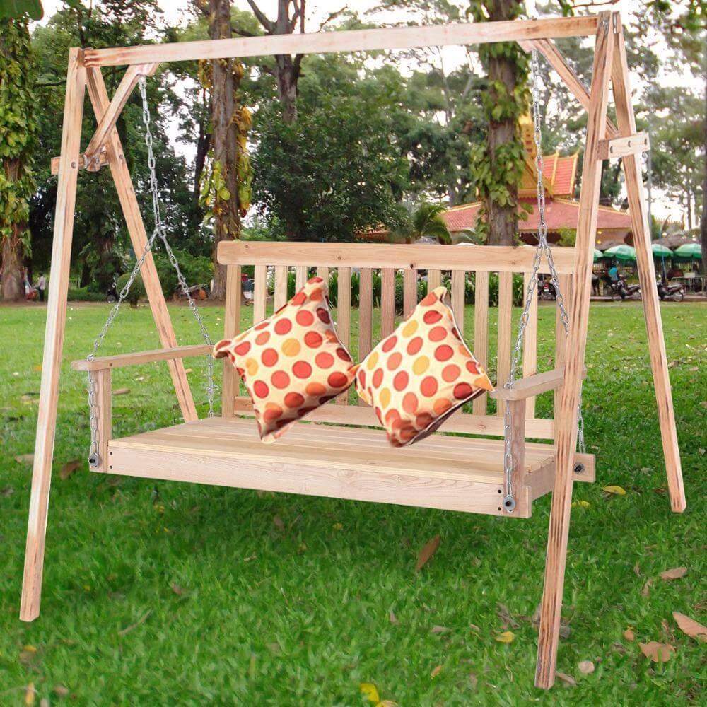 This beautifully designed porch swing will complement your outdoor furniture setting. You can swing away on a nice sunny day or cool summer night. The naturally crafted frame is made of premium cedar which guaranteed rot, decay and insect damage resistant ,making sure this porch swing last for many years. When it gets dirty you can clean it by washing it down with a hose or wash cloth. The curved design of the seat and arm rest will allow you to sit comfortably without irritation. It is weighted just right so it will not blow away or move around a lot during windy days. Comes with 2 chains so you can hang it outside of your home the same day you receive it. You can place a cushion on it for added comfort and enjoy this new patio swing during the day or night. It will be your excellent choice to buy!