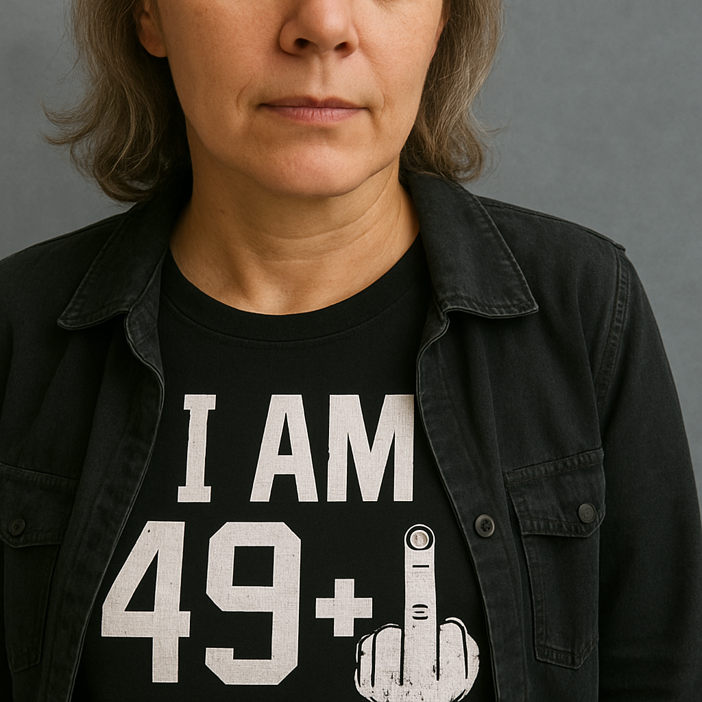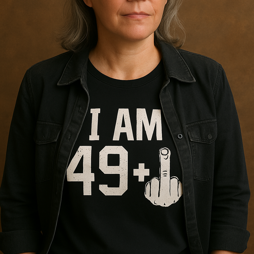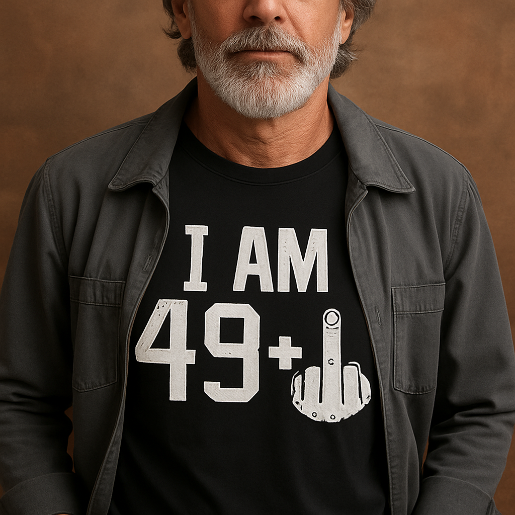 Bold, cheeky, and unapologetically sarcastic — the 49 Plus Middle Finger Sarcastic T-Shirt is the perfect gift or self-expression piece for those who embrace age with a rebellious twist. Featuring the bold print “I AM 49+” alongside an unmistakable middle finger graphic, this t-shirt delivers humor with attitude, making it ideal for milestone birthdays or everyday wear that sparks conversation.