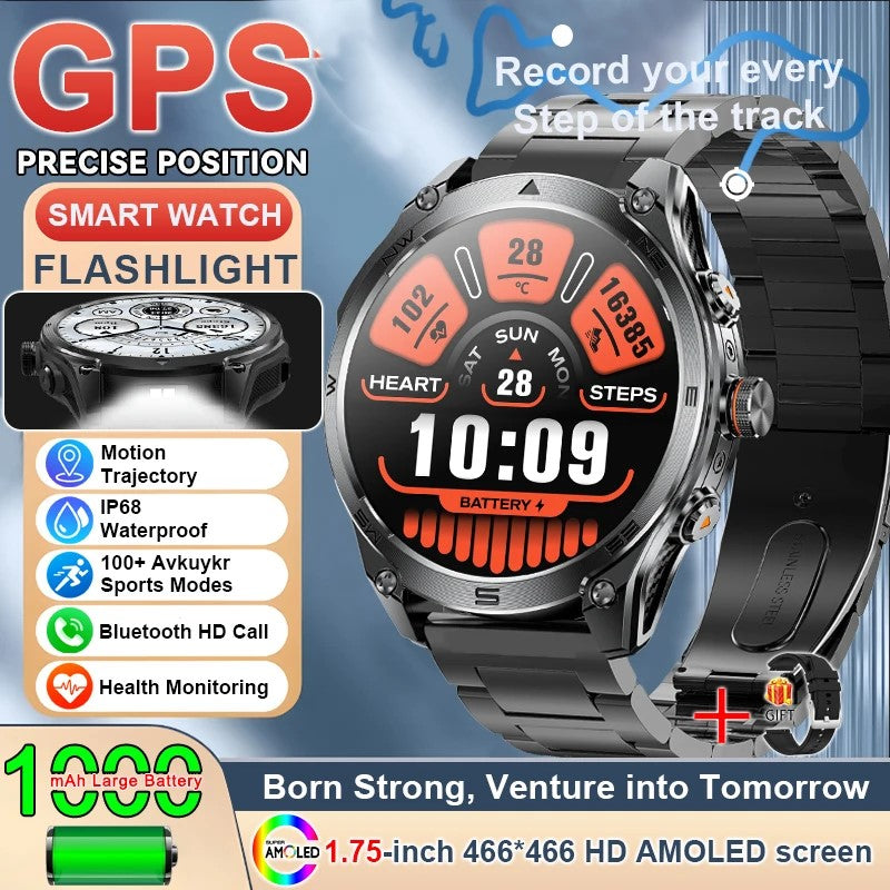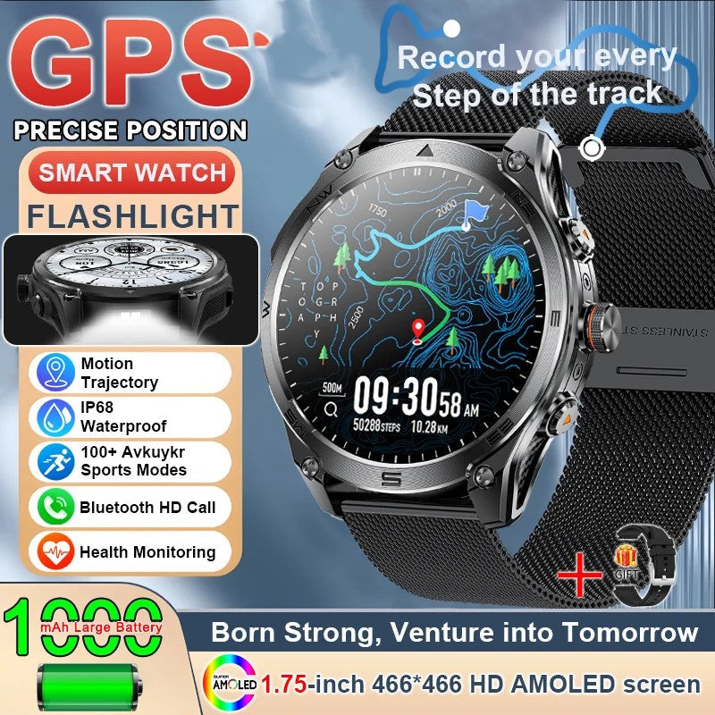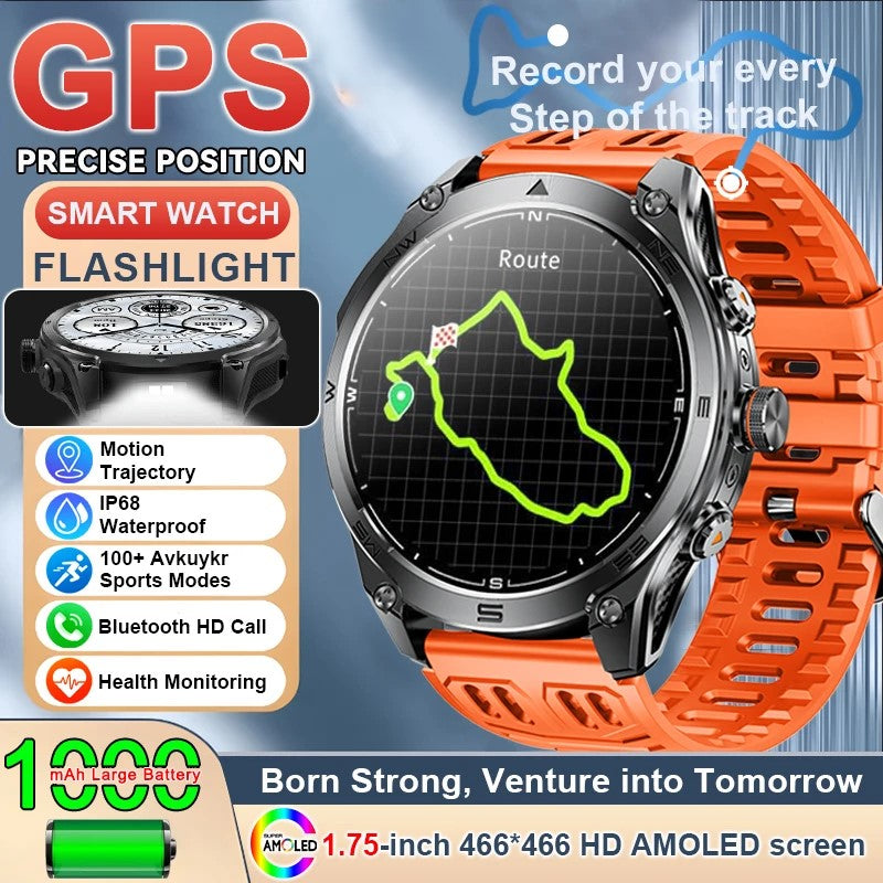 Experience the ultimate in sports and health monitoring with the Advanced Sports GPS Waterproof Fitness Tracker Smartwatch. Designed for athletes and outdoor enthusiasts, this smartwatch combines military-grade durability with cutting-edge technology. Featuring a stunning 1.75-inch AMOLED high-definition screen protected by sapphire crystal, it provides crystal-clear visibility whether you are under bright sunlight or underwater.