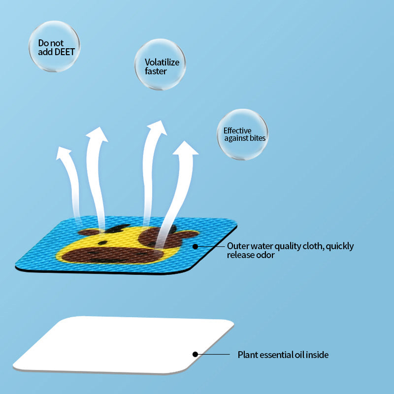 - This mosquito repellant sticker is made with all-natural, plant-based ingredients and water-resistant non-woven fabric patches. DEET free and uses the most effective and safe essential oil combination.