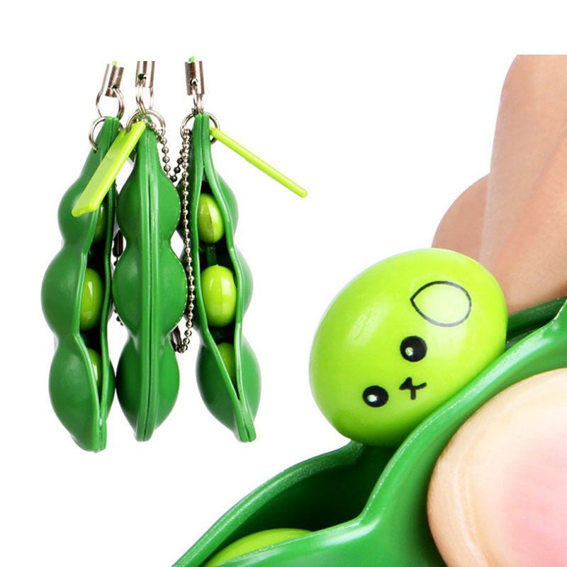This is a stress ball that looks like an adorable soybean. It's perfect for anyone who needs to relieve some tension and it's also easy to carry around with you because it comes in a small size!