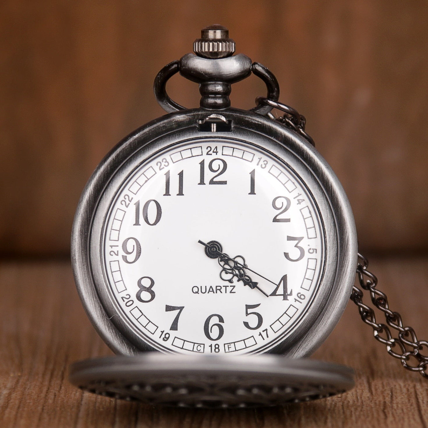 • Quartz movement- setting time easily and press the button to open the watch. Full hunter flip case-double-sided polishing in smooth. White dial with filigreed hour, minute, and second hands