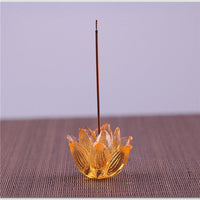 This product is a beautiful and intricate design. This incense burner is made from glass and features a lotus flower with a colorful glaze on its outside. The inside has an opening for your incense stick to fit snugly in for easy lighting and burning.