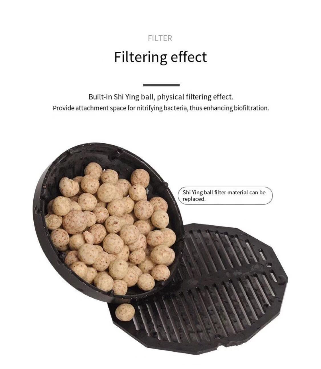 - At the bottom of the cylinder, there is a biological filter ball that helps in the growth of nitrifying bacteria, which is essential for the nitrogen cycle.