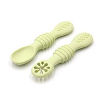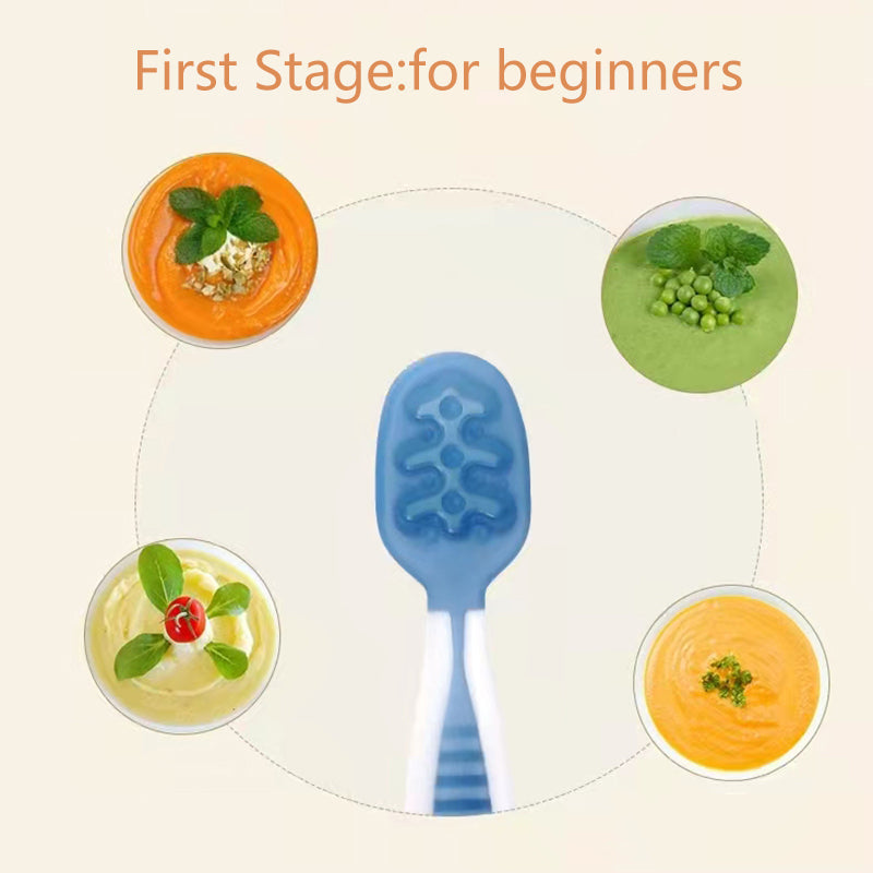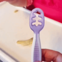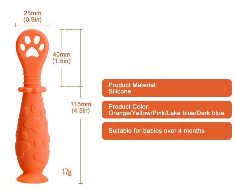 • Dimpled head, for the first step to self-feeding, flat, no wrong way to hold it, no scooping, no balancing, no rules, designed to work great with purees, also acts as a teether for sore gums