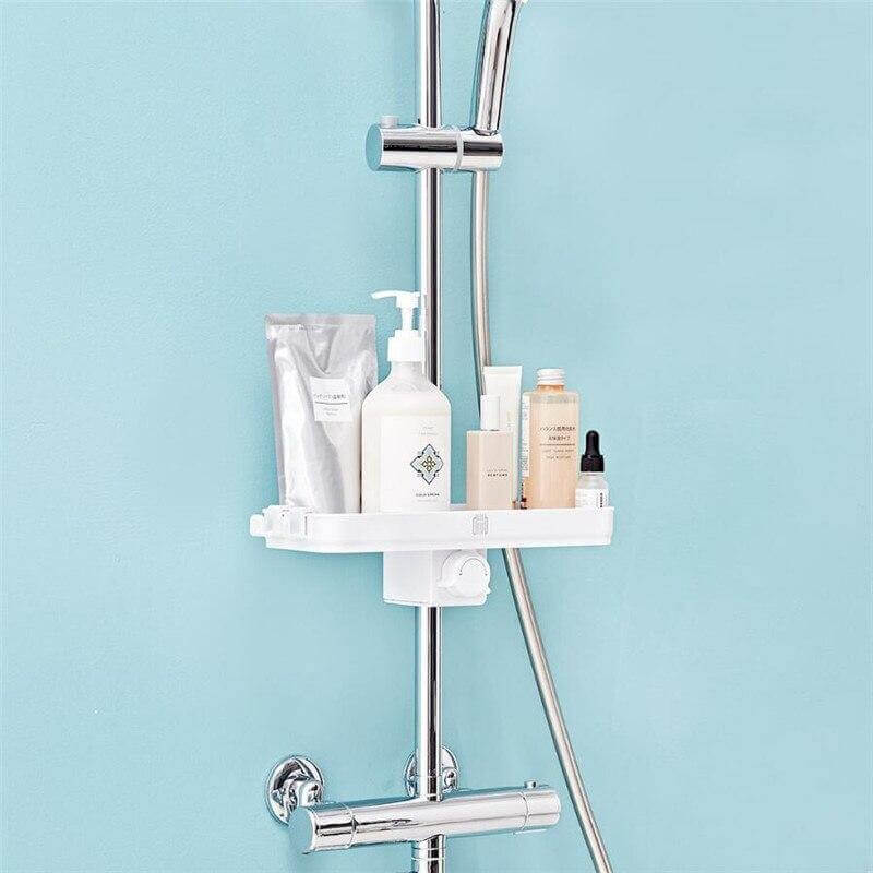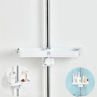 Semi-open storage shelf placed on a round rod. Give it a rod, it can sit steadily without shaking. No Adhesive No Drilling