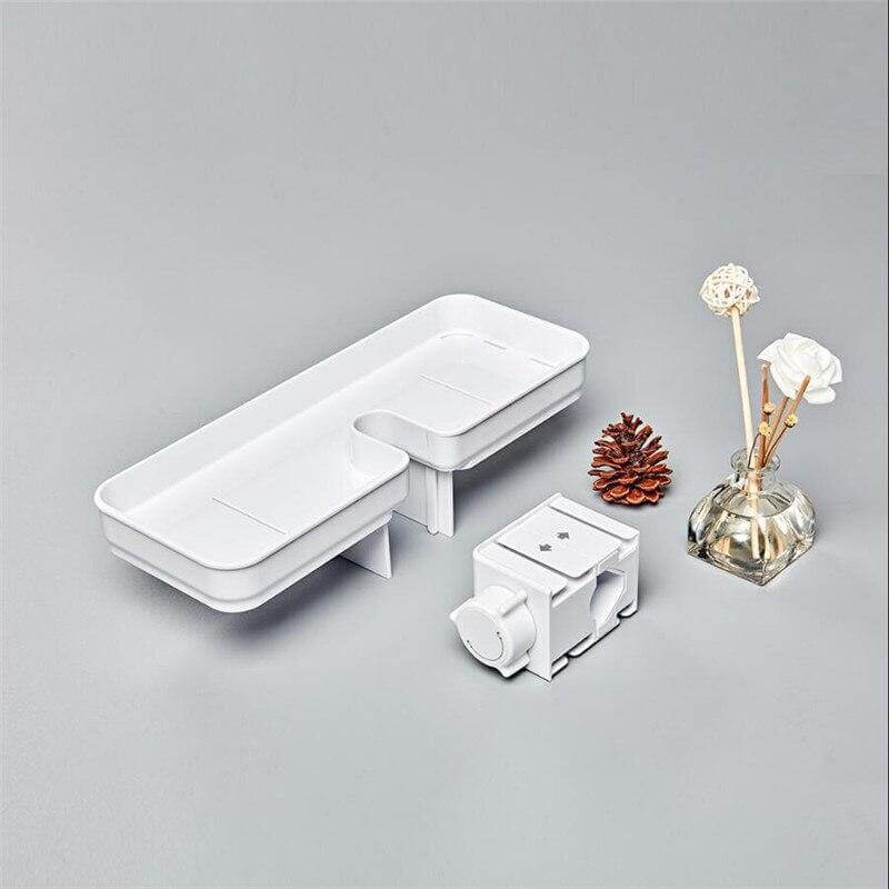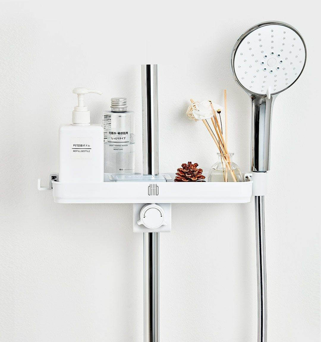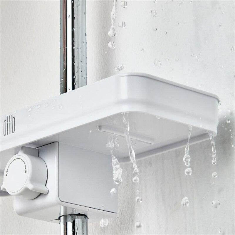 Package Includes: 1 x DIY Easy-to-Install Module 1 x Storage Shelf 2 x Hooks 1 x Showerhead Base