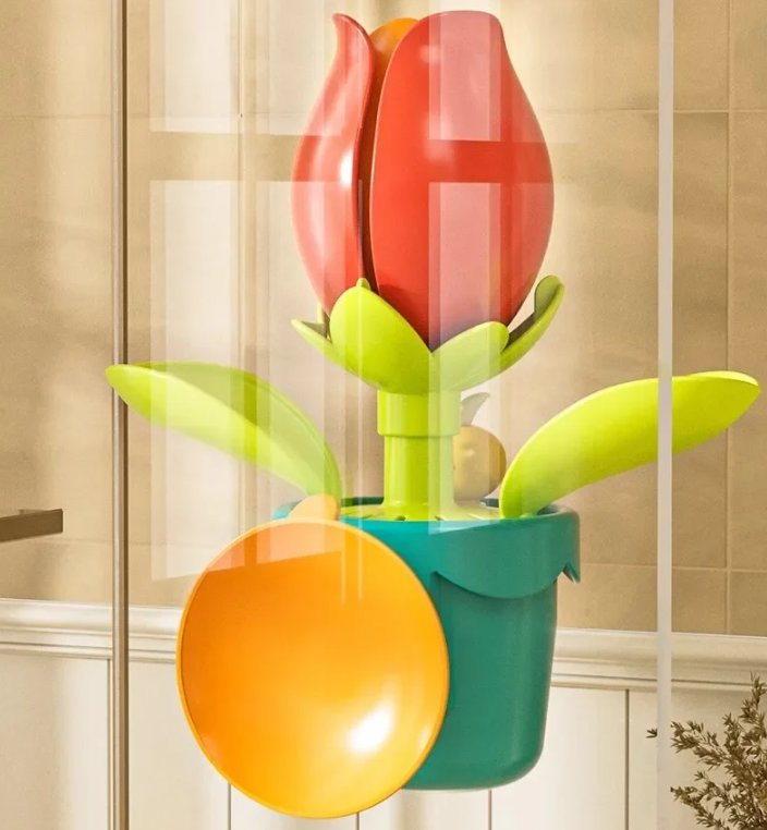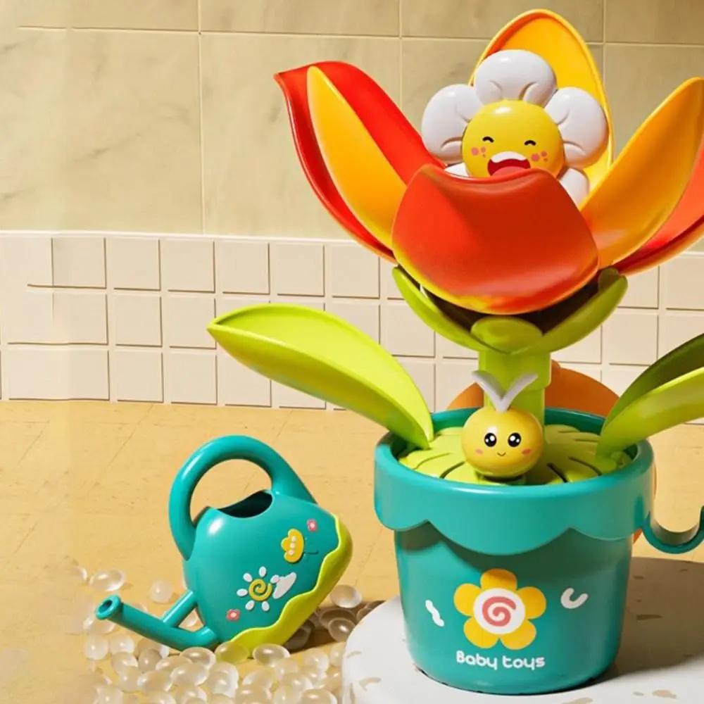 Make every bath feel like springtime with this interactive flower-shaped toy. Just pour water into the top and watch the petals spin, the flower smile, and the base spray a gentle stream—pure tub-time delight!