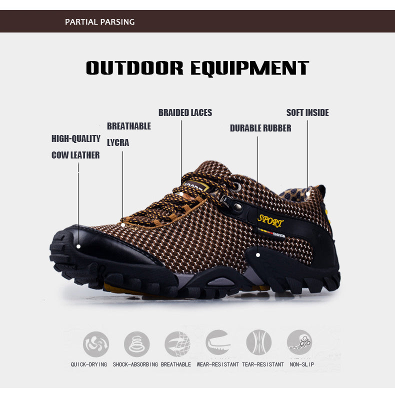 These shoes are made of breathable lycra leather, which means they're perfect for climbing. The soles and heels have a rubberized grip to help you get up that mountain without slipping or sliding. They also have laces with hooks and eyelets to keep the shoe securely on your foot.