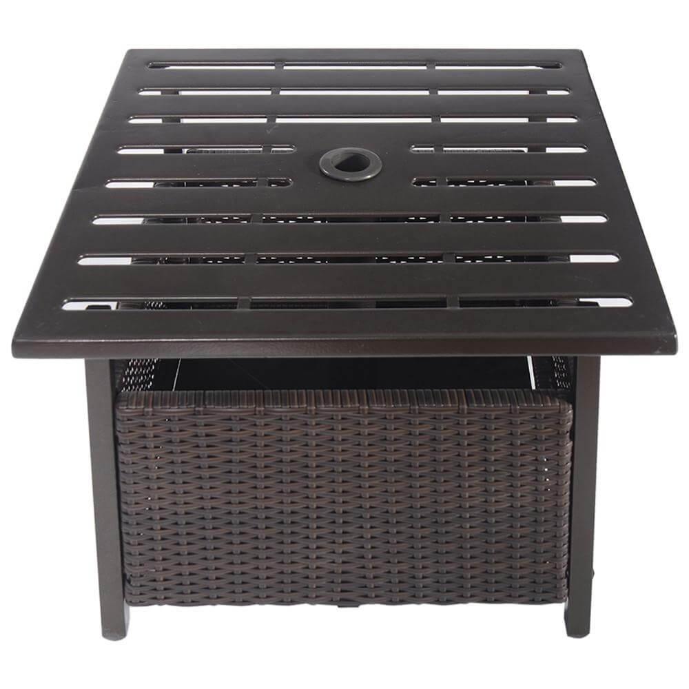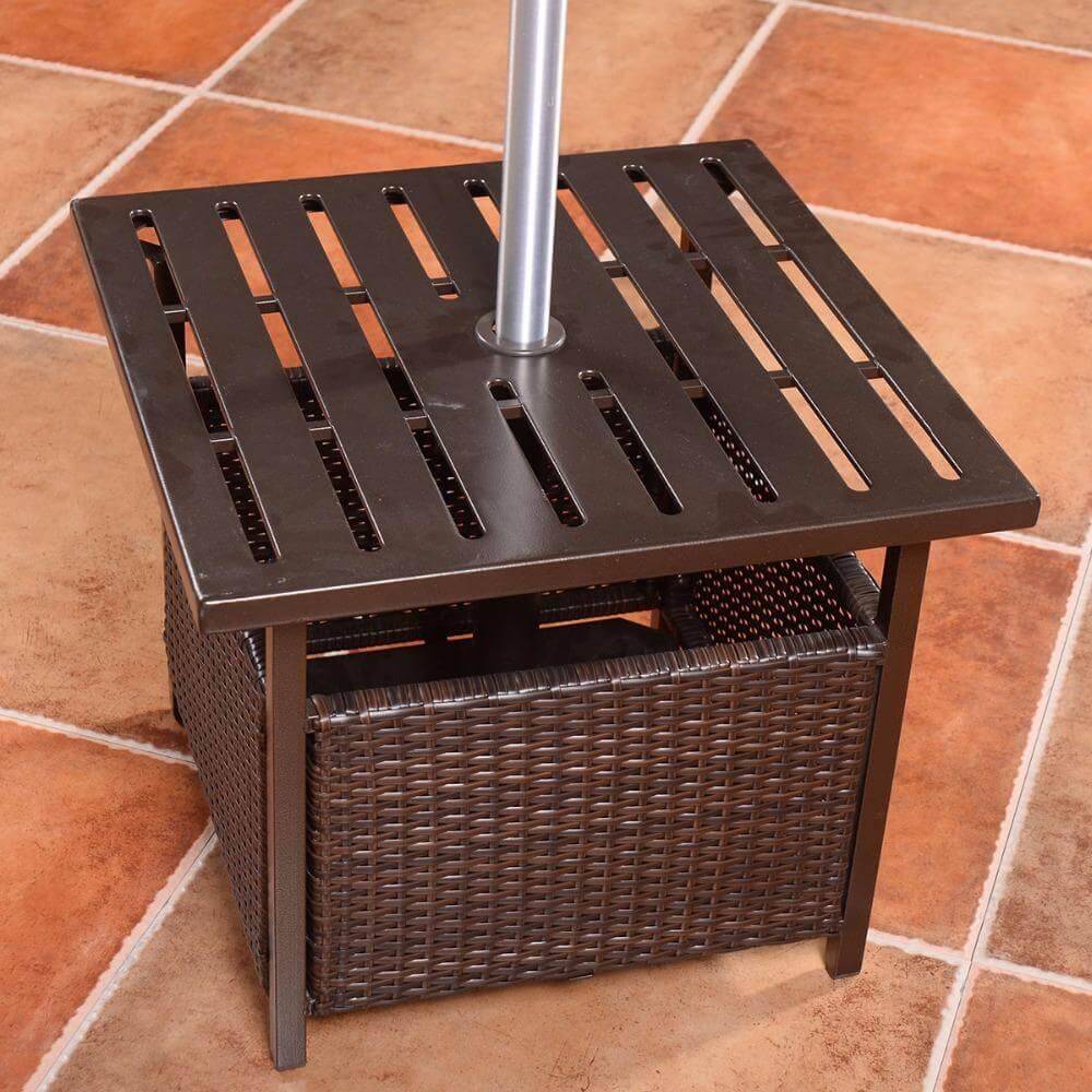 Our brown rattan side table is made of high quality PE rattan material, which will be lightweight and eco-friendly. The rattan material is also UV resistant and water resistant so it is able to withstand moderate weather but may need extra protection against extreme weather. A umbrella hole in the steel tap top for installing a umbrella, which can protect you and your table from ultraviolet ray. It will be additional to your outdoor living space, such as patio, garden, backyard, pool side. Do not hesitate to buy one!
