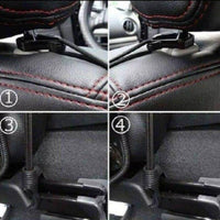 2.Affix the two bigger plastic hooks on the headrest bar and adjust the height of the dog barrier to prevent the dog from getting into the driving seat.