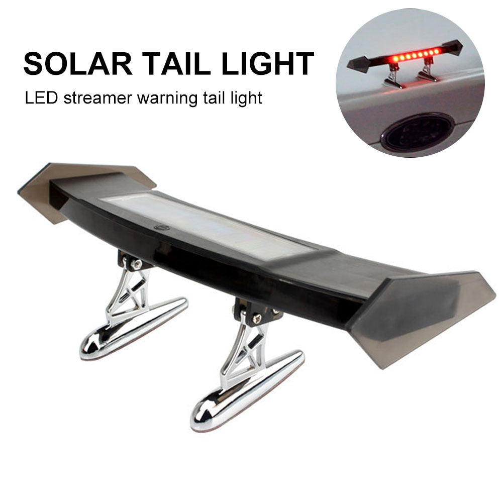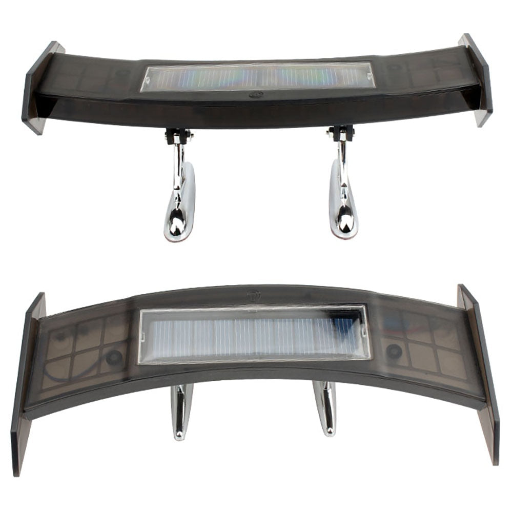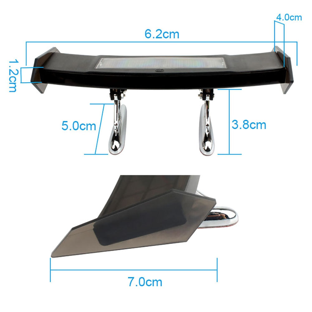 Solar Car Tail Wing Light: It is made of Plastic + LED. Adopt solar power supply mode, and the solar-powered backup battery can light up at night and enter charging mode during the day: Energy-saving and environmental protection. And make driving at night safer.