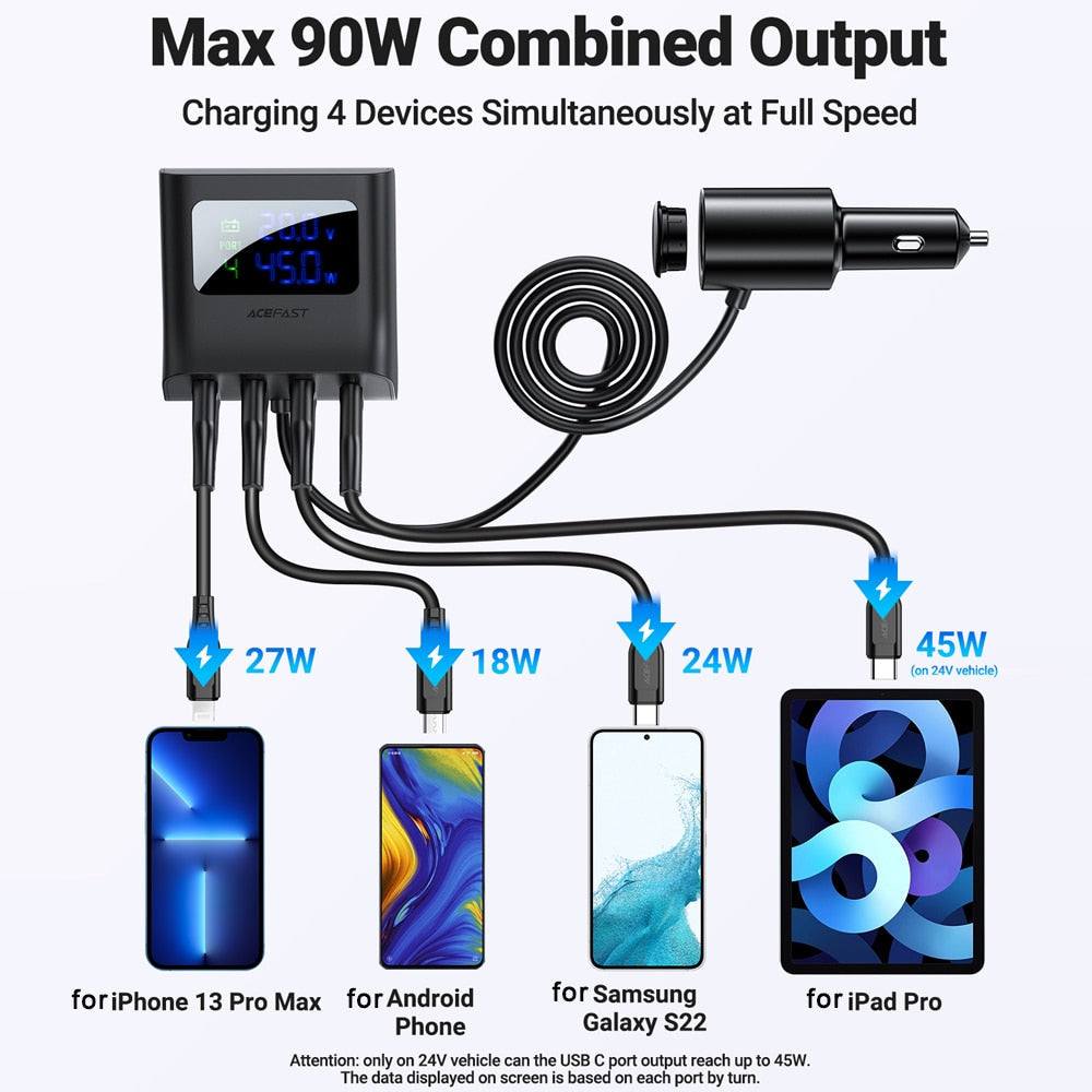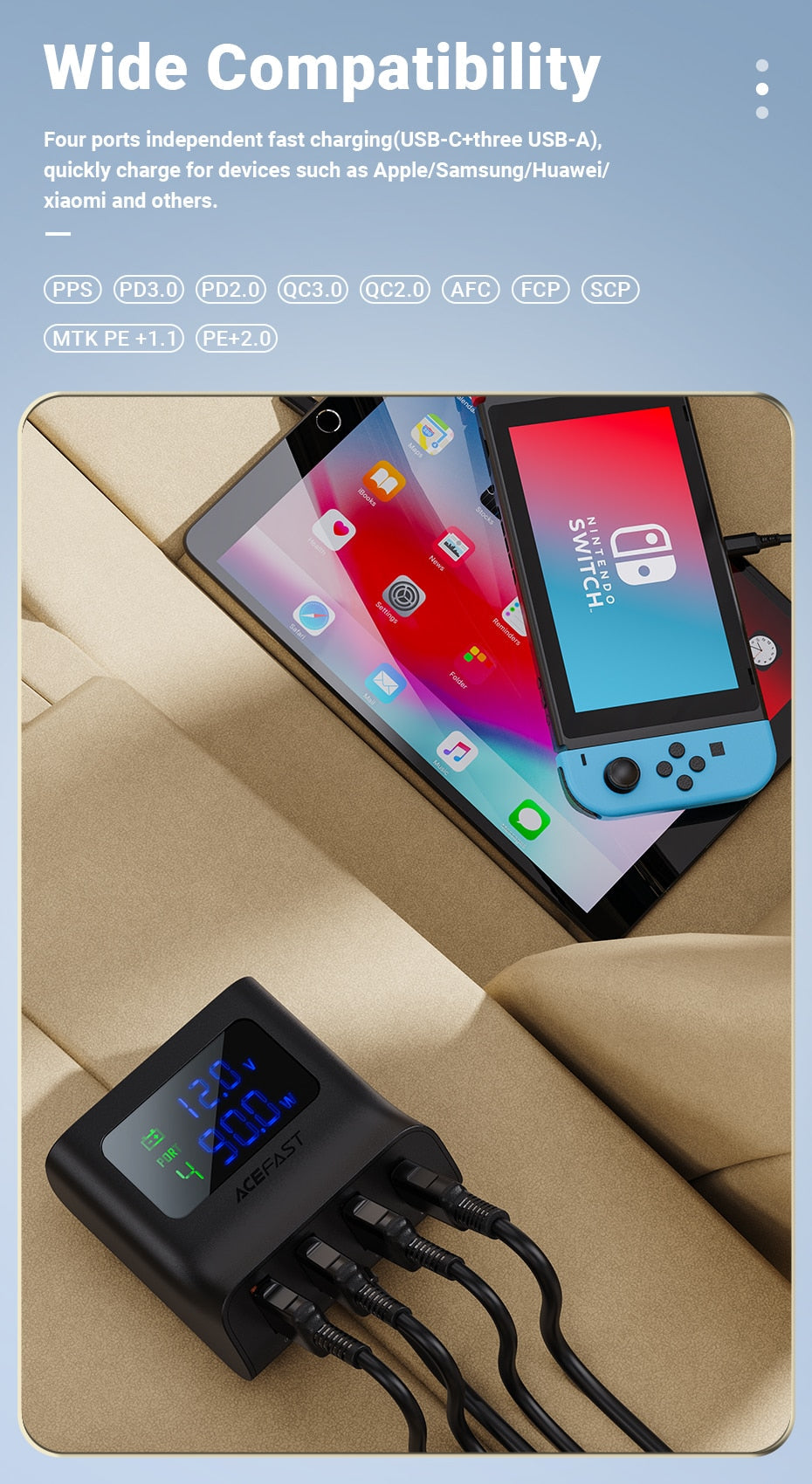 Wide Compatibility: Four ports independent fast charging(usb-c+three usb-a) quickly charge for devices such as Apple/Samsung/Huawei?Xiaomi and others.