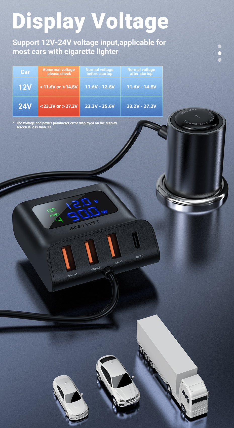 Display Voltage: Support 12V-24V voltage input,applicable for most cars with cigarette lighter.
