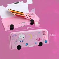 1x Cartoon Bus Multifunctional Kids Stationery Pencil Box