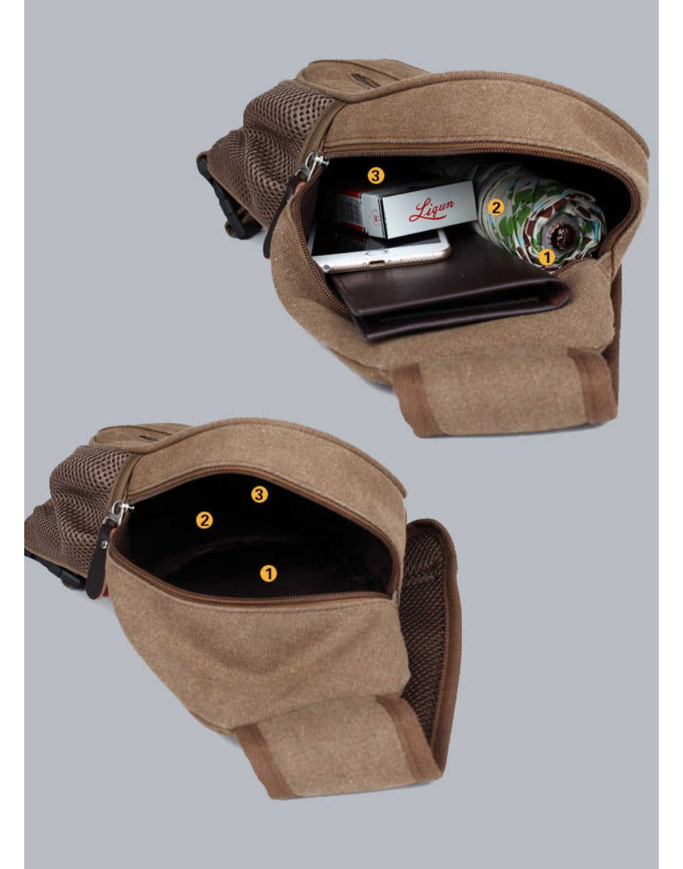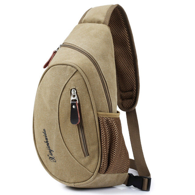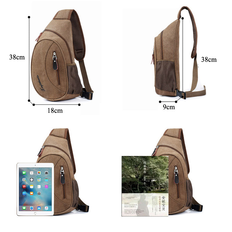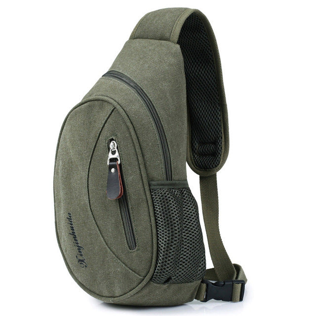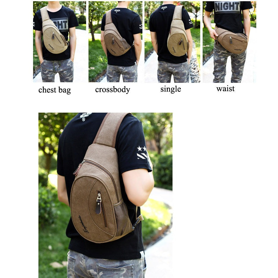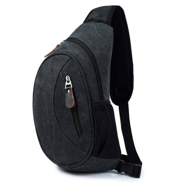 A crossbody bagpack with flap closure, adjustable shoulder strap, and zipper pocket at the front. The main compartment is equipped with a zipper pocket.