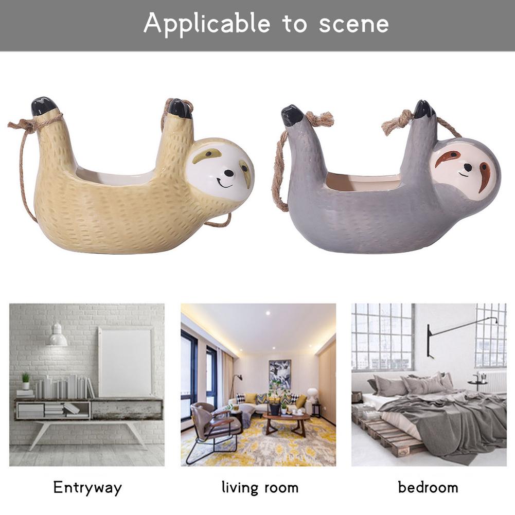 This ceramic happy sloth flower pot is perfect for any home. With a smiling face and an adorable body, this sloth will surely put a smile on anyone's face. It's great for any home, office, or garden and makes a perfect gift!