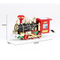 Simulated steam train set, with vocal lights, can be hung on the Christmas tree, decorated, and the train can run continuously on the track.