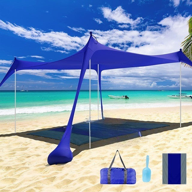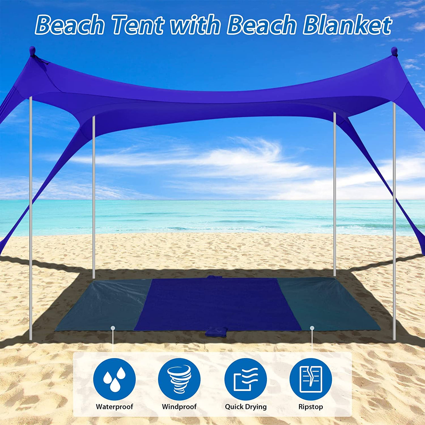【ENJOY AND STAY SAFE IN THE SUN】This sunshade tent are made of strong and elastic Lycra fabric that has UPF 50+ protection and water-resistant functions, durable materials that are not afraid of stretching and tearing. It also has excellent 4-sided ventilation performance, which can provide great airflow. This is particularly essential for those sweaty summer days, as it allows you to enjoy the sea breeze without leaving your beach shade.