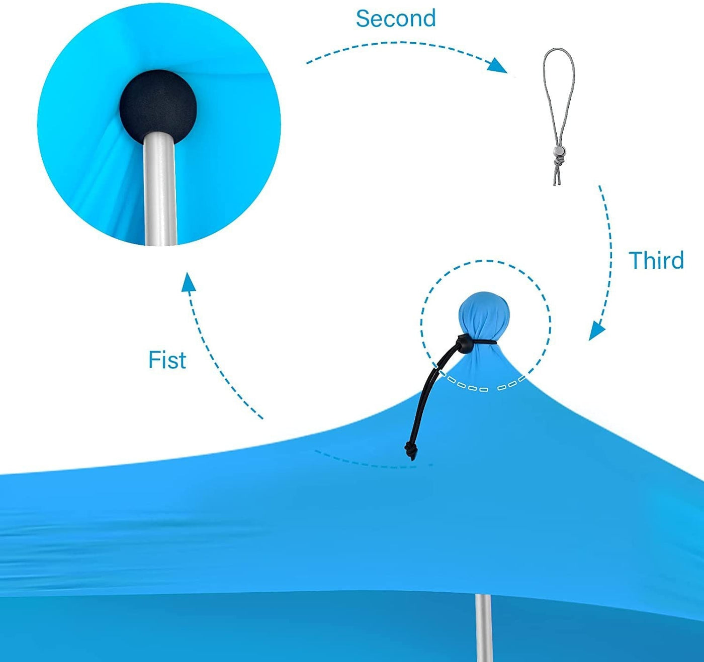 When you enjoy a relaxing beach trip, are you frustrated that the beach tent is messy in the wind? Here, beach canopy tents can be set up within 20mph winds with no issues. It holds up well in the wind because of the extra big sand anchors and high-quality rust-proof aluminum poles. Make sure to use the included rubber bands to fix the poles to the tent and fully fill the sandbags, or use the ground pegs to add extra stability.