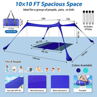 【LARGE POP-UP BEACH TENT WITH BLANKET】This outdoor sun shades are available in size[10x10 FT with 4 Poles], The 6.6FT high aluminum pole keeps the entire beach canopy area at full height, increasing the shaded area and accommodating more people. It comes with A 210T polyester sand-proof beach mat, ensuring you have a chilling, private, and sun-protected beach experience.