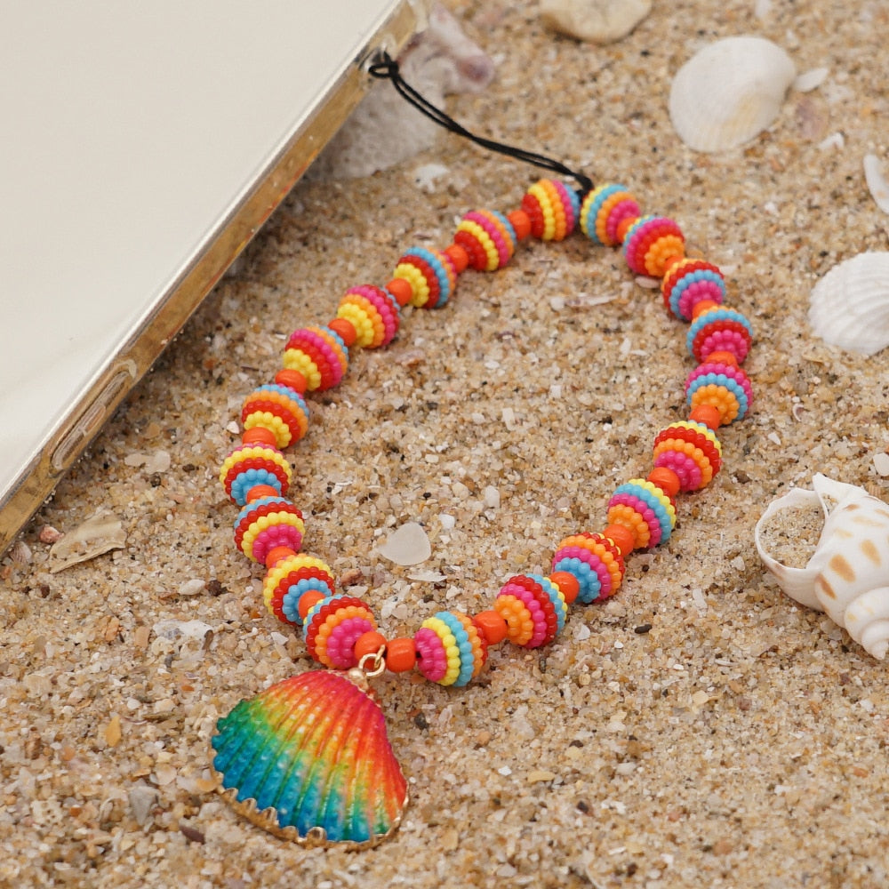 Carry your phone in style with this colorful starfish phone case strap! This is a sturdy, durable neoprene strap that securely attaches to your phone case. Simply slip it over the silent button or any gap in your case. It's easy to take on and off when you need to change your case. The bright colors are perfect for matching any outfit!