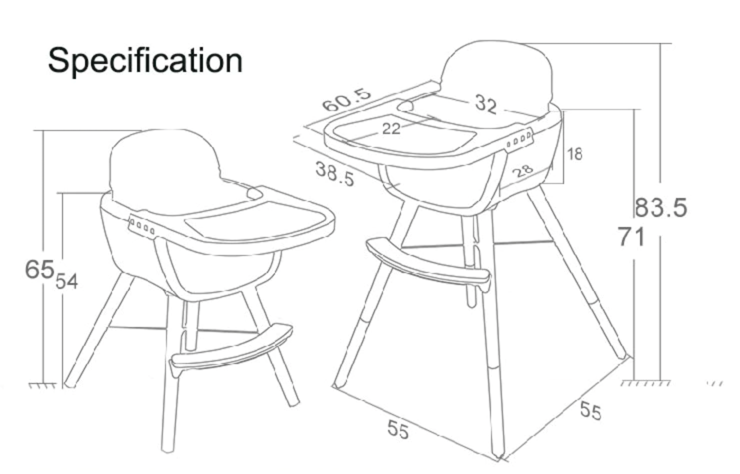 • This feeding chair can be both a drawing table and a feeding chair simultaneously.