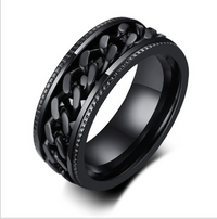 This rotating ring is perfect for any occasion! Its made of quality stainless steel and is durable. This product will last you a lifetime, making it the perfect gift for yourself or someone special in your life. The polished edge and curb chain inlaid design is a sophisticated touch that makes this ring trendy and masculine.