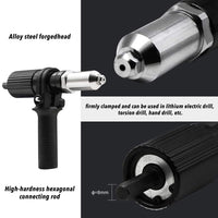 - Connect the lithium electric drill for quick conversion, connect the hexagon screw of the conversion joint to the electric drill, and quickly convert it into an electric riveting gun, which is easy to install.