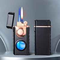 Light up with confidence using this futuristic dual-fire windproof lighter that’s built for both performance and style. Whether you're outdoors or indoors, its powerful double flame stays strong against wind and weather. The sleek metallic gradient finish adds a bold, modern touch to your everyday essentials.