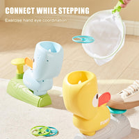 Put the flying toy shooter into the toy, and then press the pedal to the toy that pops up. After popping up the plate, you can catch it with the net. Children can play alone or play with other children or partners.