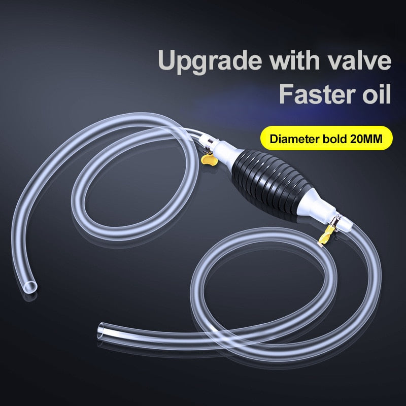 The pump allows you to quickly and easily transfer fuel, water or other liquids from one container to another. The rubber extrusion pump generates quick suction to activate the siphon. To save and easily remove liquids from car radiators and fuel tanks. A rubber hand pump that quickly starts siphon liquid flow. The long and thick transparent PVC hose is resistant to oil and high temperature. It is equipped with two yellow fittings that increase the tightness of the hose and ball pump to prevent side leakage.