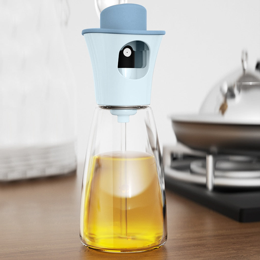 The push-type atomized oil spray bottle is fine oil control and healthy life for cooking. The seasoning bottle has a built-in nozzle, is dust-proof, and push-type nozzles are convenient and quick to spray oil.
