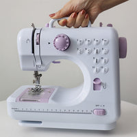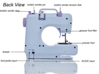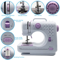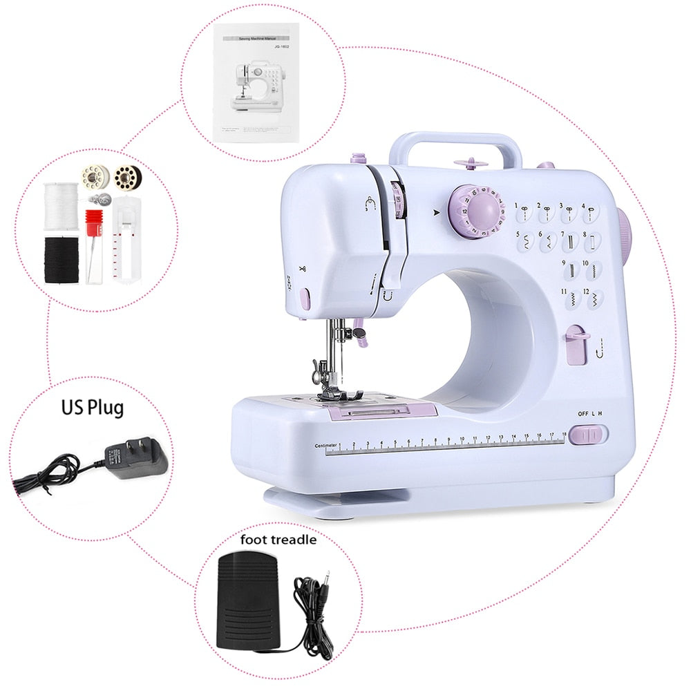 Portable Sewing Machine: Lightweight, only 5.45 pounds, small in size: 10.8 x 4.8 x 10.2 inches, and easy to store. The portable sewing machine is equipped with an LED lamp, the foot pedal, metal threader and thread cutter, locking metal presser foot.