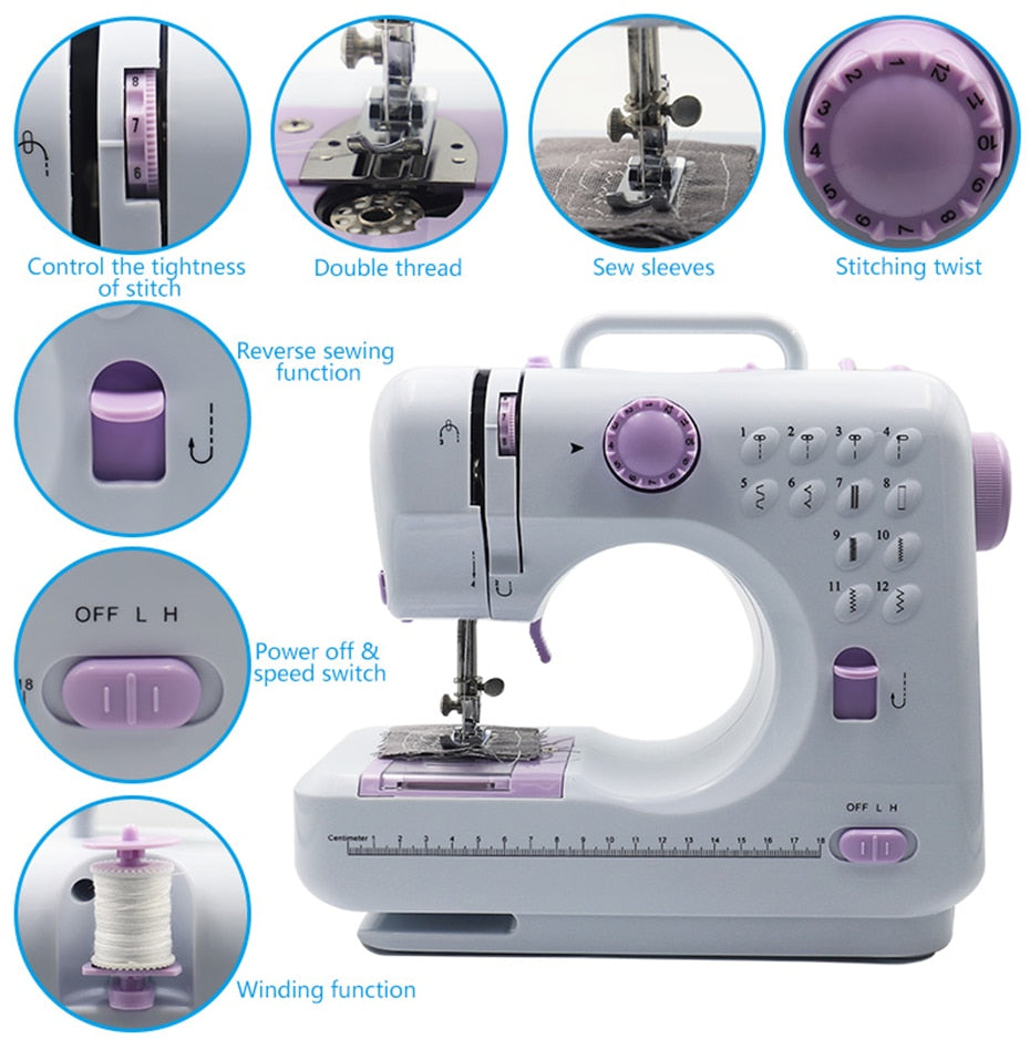 Dual-threaded, 2-speed, double power supply design makes it easier for you to choose the most suitable model. With 12 built-in stitches, you only need to turn the gears to switch the stitches you need to your own fabric. You can use this machine to sew zippers and buttons; easily reverse stitching with one button. Choose a different metal presser foot for replacement according to your needs.