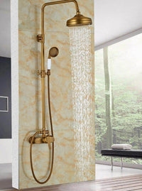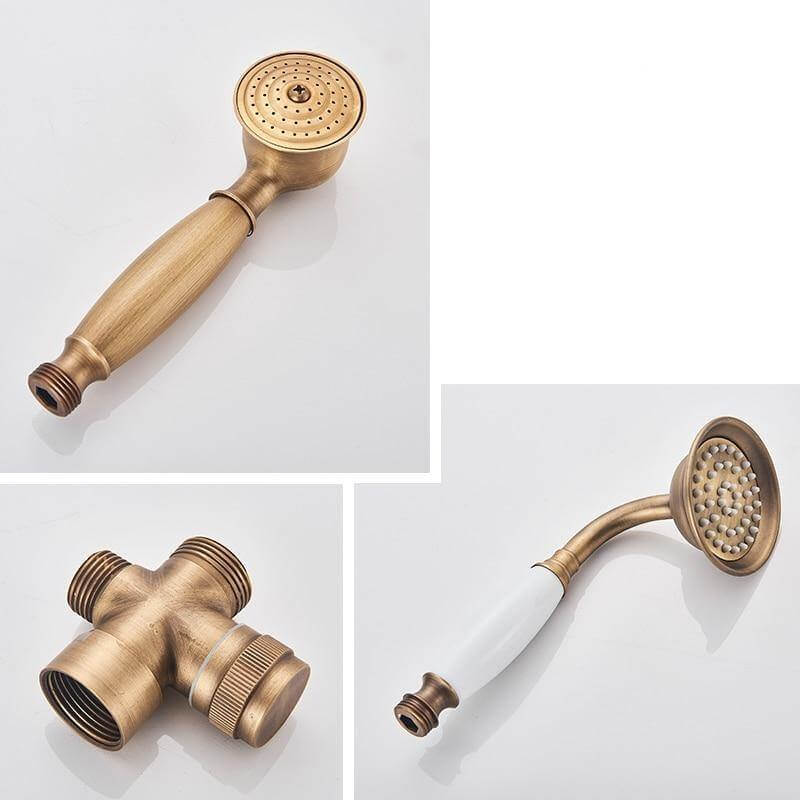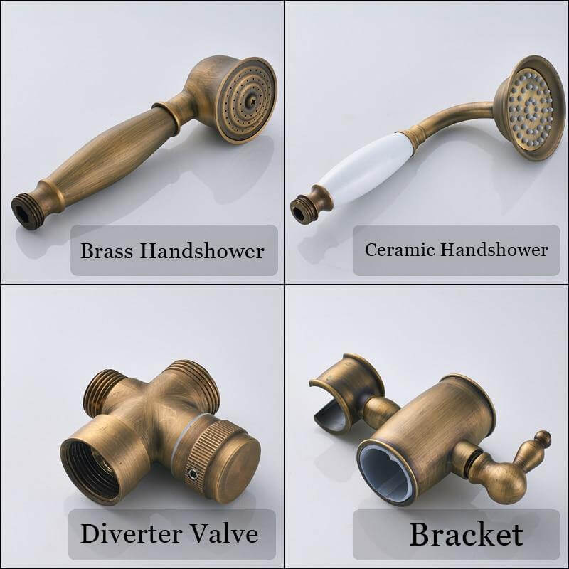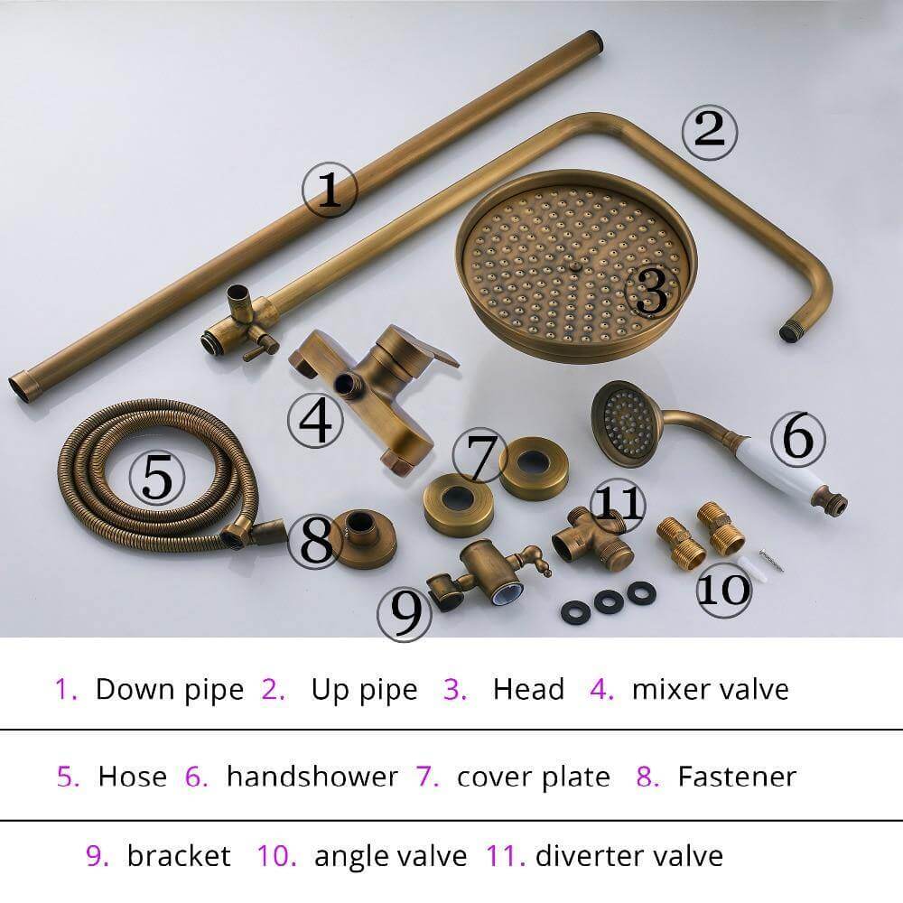 Bring some color to your bathroom with this brass antique shower kit. It is very easy to switch between 2 showerheads. Whether you take a shower with the water coming from above or take a shower with a standard showerhead. The rainfall showerhead is adjustable. It is easy to install.
