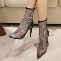 Elegant Rhinestone Mesh Ankle High Heels - Image 0