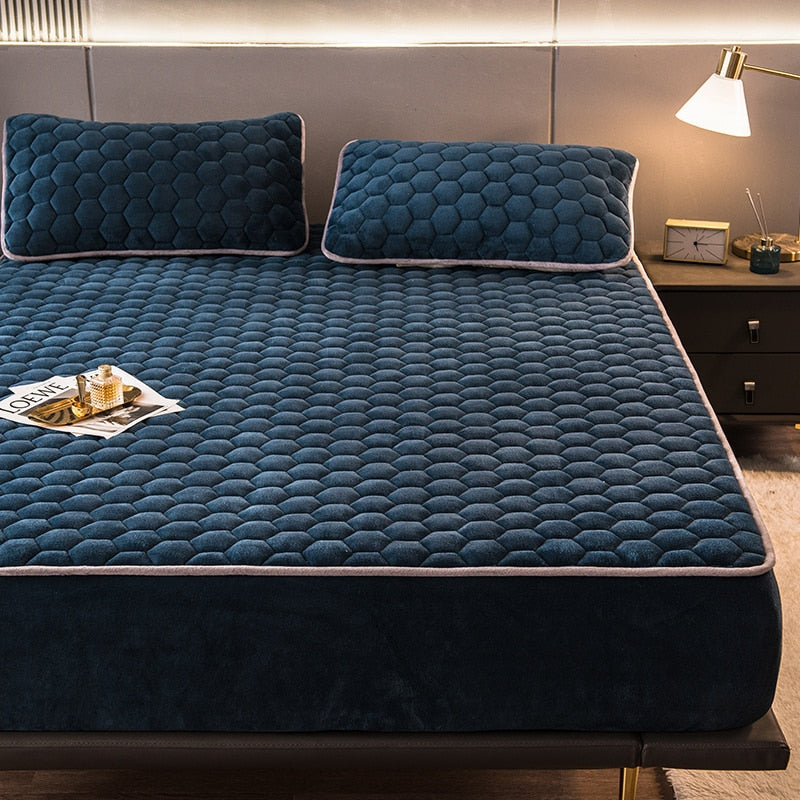 Ultra soft crystal velvet diamond quilted pattern, Antistatic,pilling resistant.30cm drop ensuring everything under your bed, for a neat and crisp look. It's a bottom bedspread or bed sheet can sleep on directly, of course for putting other coverings. It is perfect to sleep on during chilly days and nights, cozy warm.