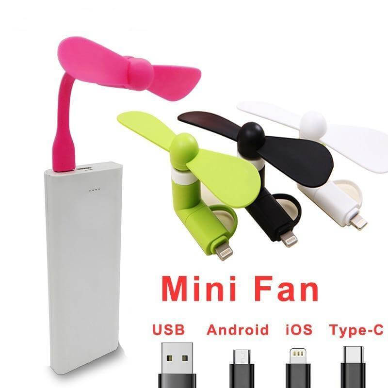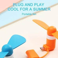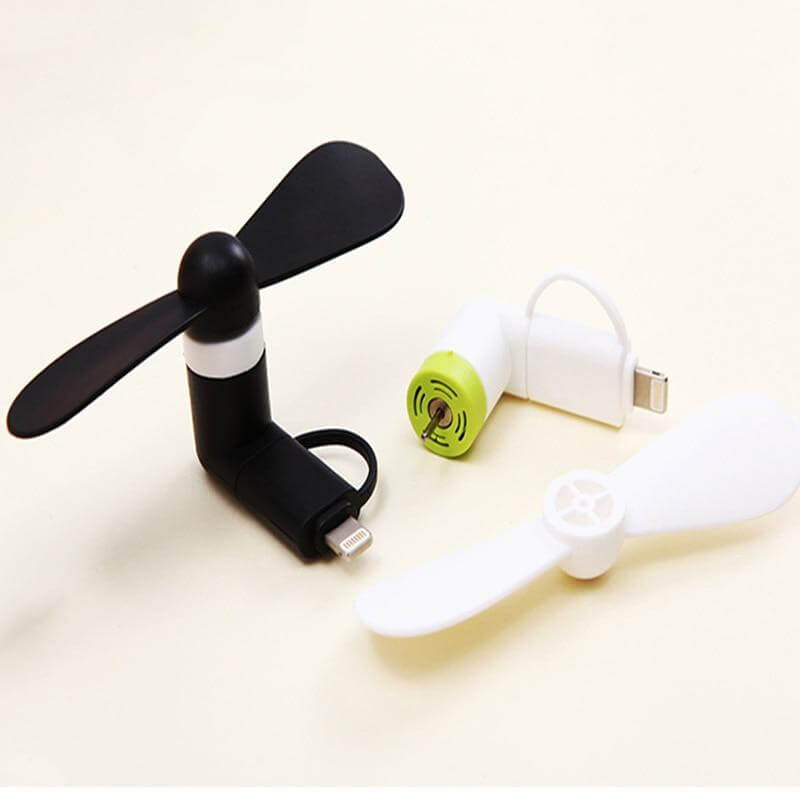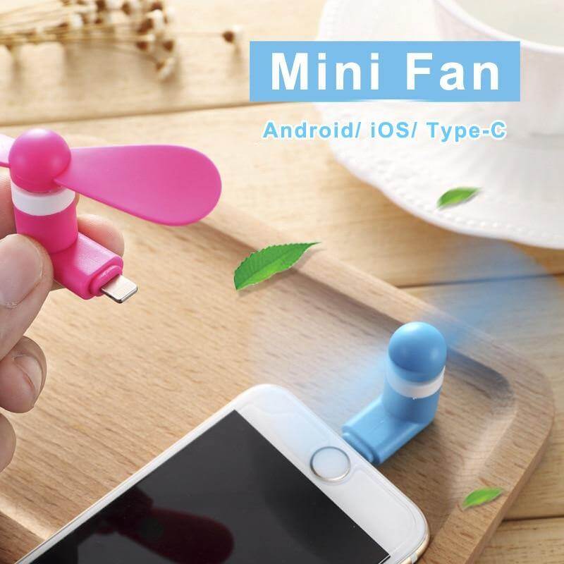 This is Phone Mini Fan, a perfect gadget for hot summer days! It plugs into your phone and runs on the phone's battery. It is great for outdoor activities.