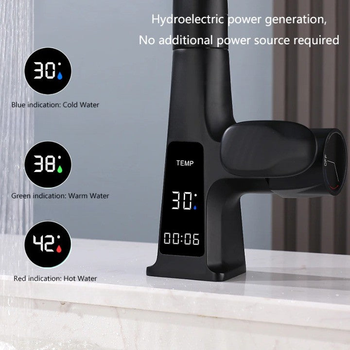 Flow Pro Rotatable Temperature Display Smart Faucet is the perfect addition to any modern kitchen or bathroom. This innovative faucet is designed to make your daily routine more convenient and efficient while adding a style touch to your space.
