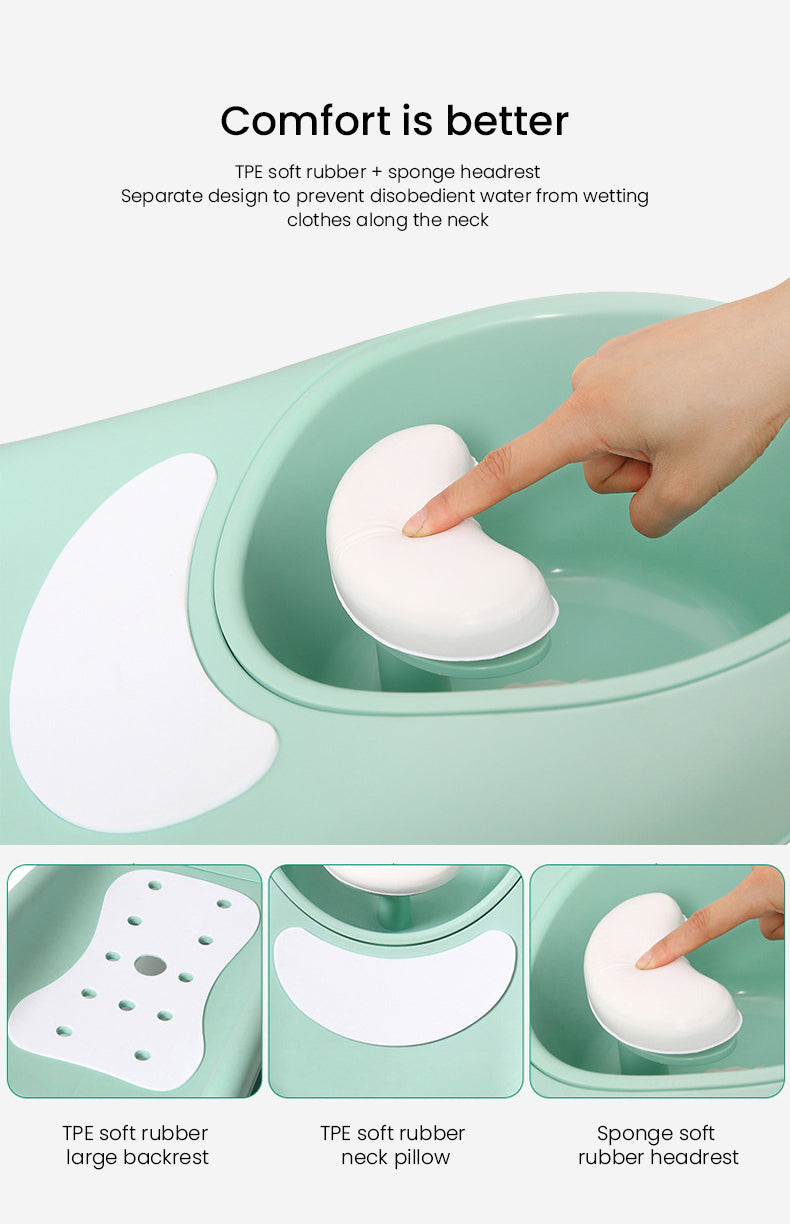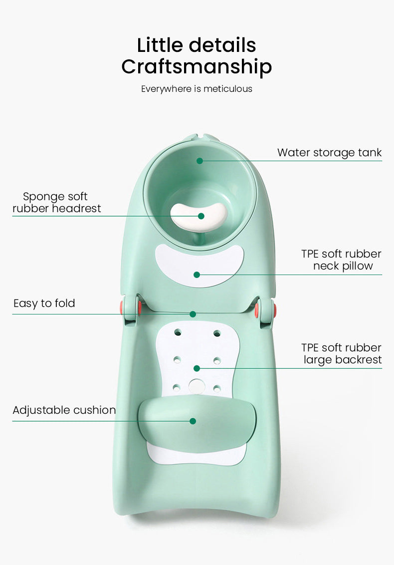 - Baby shampoo chair has a hanging hole design, which is easy to hang without any effort, and the storage is simpler and does not occupy space.