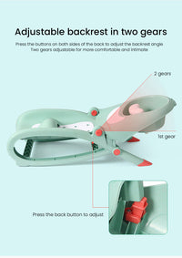 Fit the back curve, comfortable support baby's spine baby is like a recliner, naturally lying flat without crying. Backrest two-gear adjustable: Press the buttons on both sides of the back to adjust the backrest angle. Two gears can be adjusted to make it more comfortable and intimate